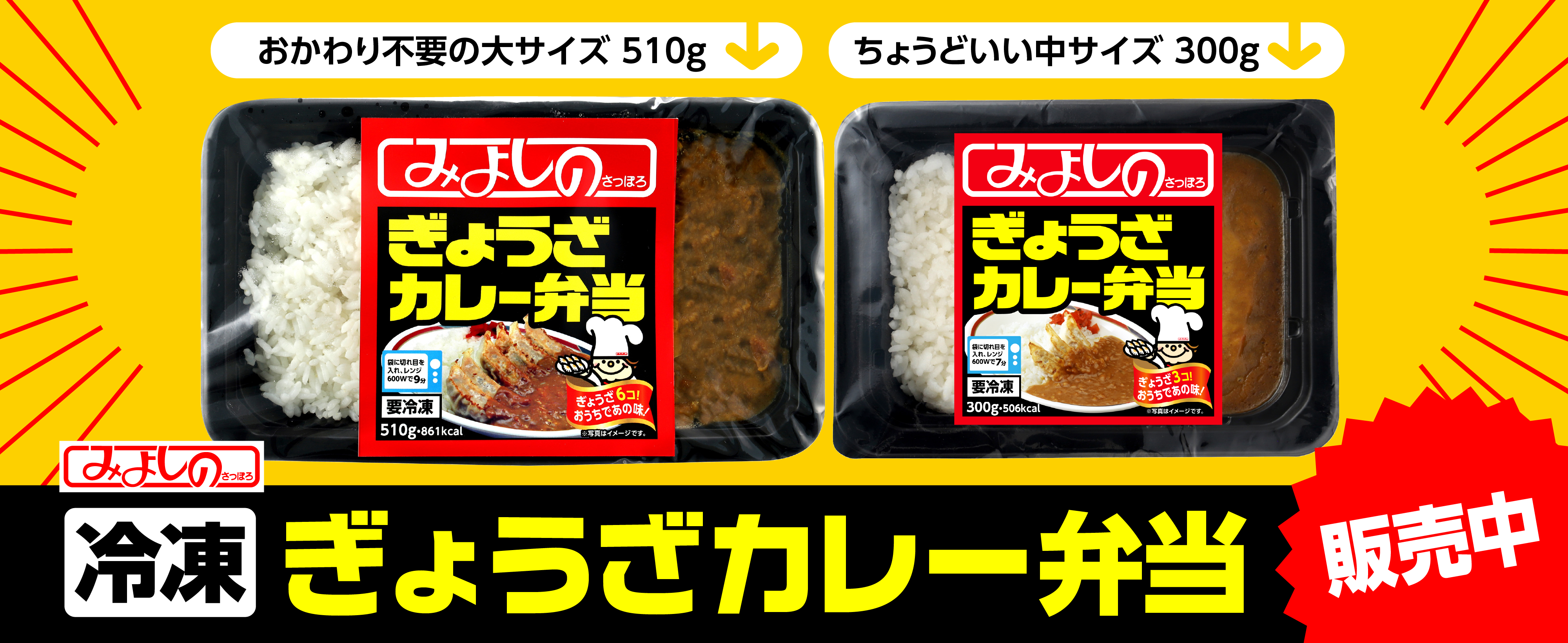 定番のぎょうざカレーが冷凍になって通販に登場! ※お味は辛口になります。 ※福神漬はついてきません。 【商品の詳細】 商品名:冷凍ぎょうざカレー弁当 510g×3袋 原材料:ご飯(米(北海道産))、カレー(玉ねぎ、カレールゥ、鶏肉、その他)、 餃子(小麦粉、キャベツ、豚肉、牛肉、卵、長ねぎ、その他)/調味料(アミノ酸等)、 ソルビトール、乳化剤、カラメル色素、酸味料、香料、キシロース、増粘剤(グァー)、香辛料抽出物、甘味料(甘草)、(一部に卵・乳成分・大豆・ごま・小麦・豚肉・牛肉・鶏肉・バナナ・ りんごを含む) アレルギー:卵・乳成分・大豆・ごま・小麦・豚肉・牛肉・鶏肉・バナナ・りんご 内容量: 510g×3袋 <1袋あたり→米200g、カレー190g、ぎょうざ6個(120g)> 保存方法:-18℃以下 賞味期限:製造日から半年 【 お知らせ 】 ※北海道からの発送となりますので、地域によってはお手元に届くまでお時間を頂く場合もございますのでご了承ください。 ※のし紙が必要なお客様は、ご注文画面にあるメモ欄に、のし紙必要・のし紙の内容の2点をご記入ください。