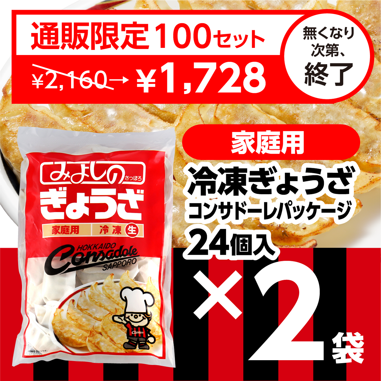 <家庭用>みよしの冷凍生ぎょうざコンサver.×2袋【期間限定】